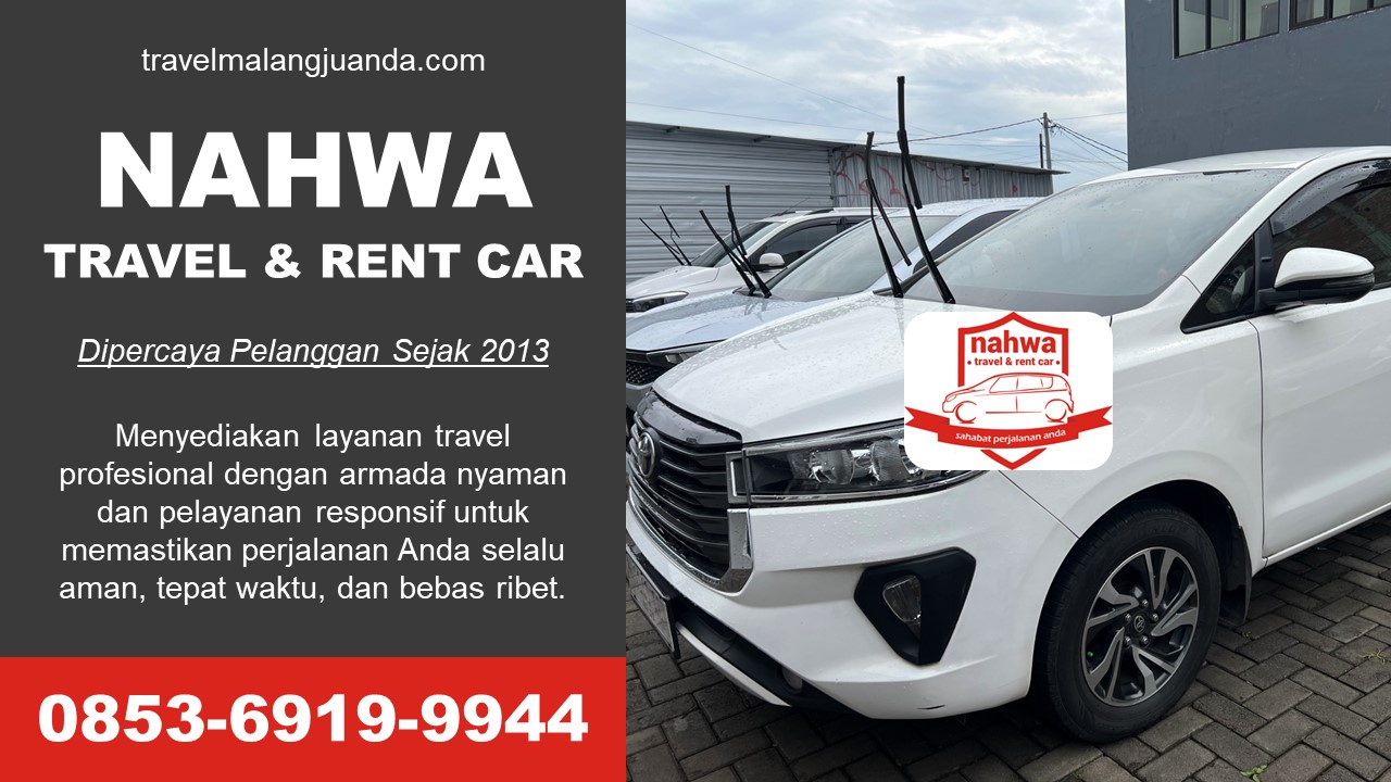Telah berkiprah sejak 2013, Nahwa Travel senantiasa berupaya mempertahankan standar mutu layanan Malang Juanda dan antar kota agar selalu stabil. Kami sangat menyadari bahwa tiap trip yang kami jalankan merupakan sebuah tanggung jawab moral. Dan setiap tanggung jawab tersebut wajib ditunaikan dengan dedikasi yang setulus hati.